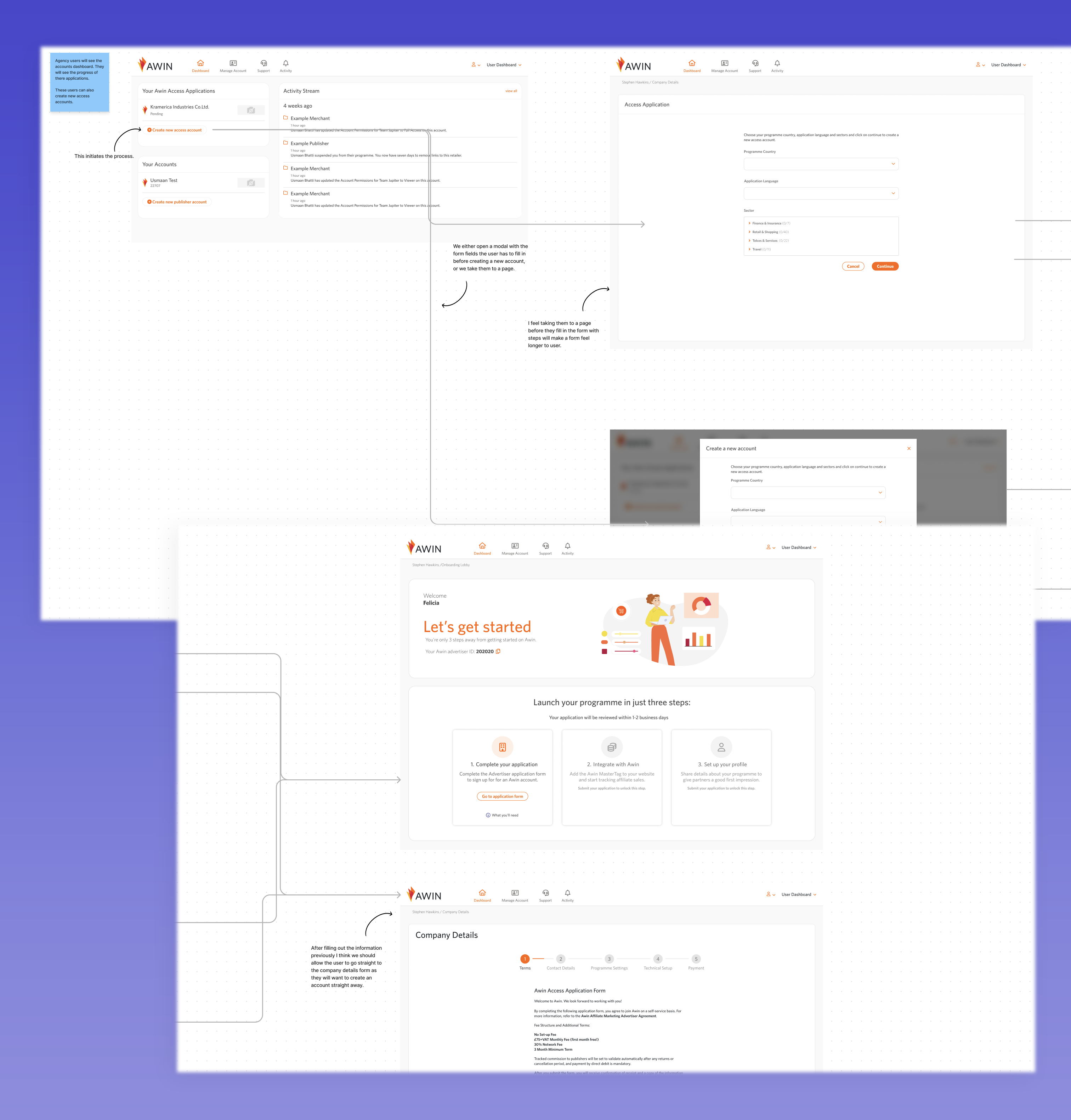 After understanding the customer journey, I proposed options to improve agency user account creation. I discussed these with stakeholders to determine feasibility.