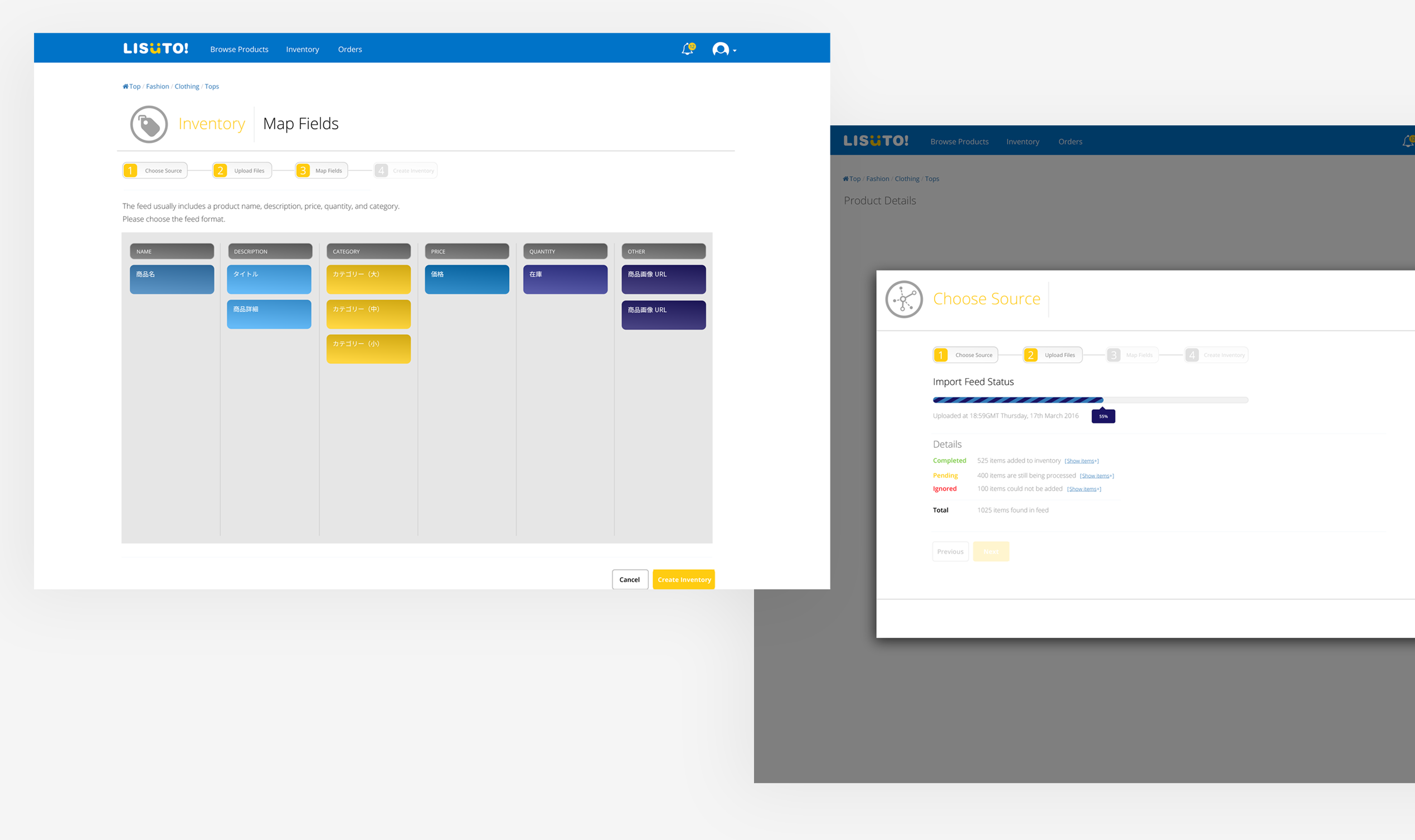 The product’s main service was to import, manage, and categorize product inventory feeds, syncing them with e-commerce marketplaces in multiple languages to enable global sales.
