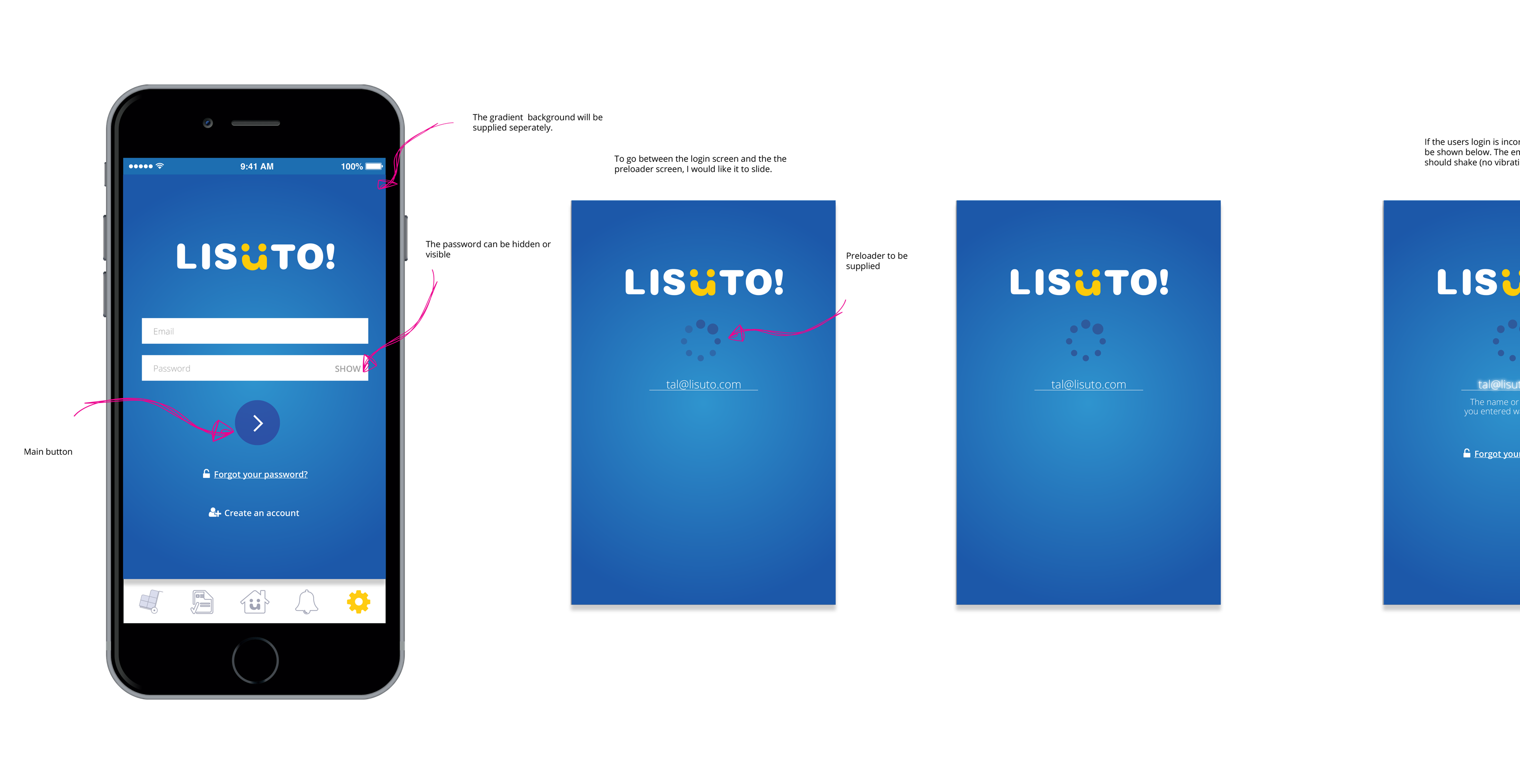 The prototypes included designs for the login/logout process, navigation flow, and feed display. Despite promising progress, the project was discontinued due to financial constraints.