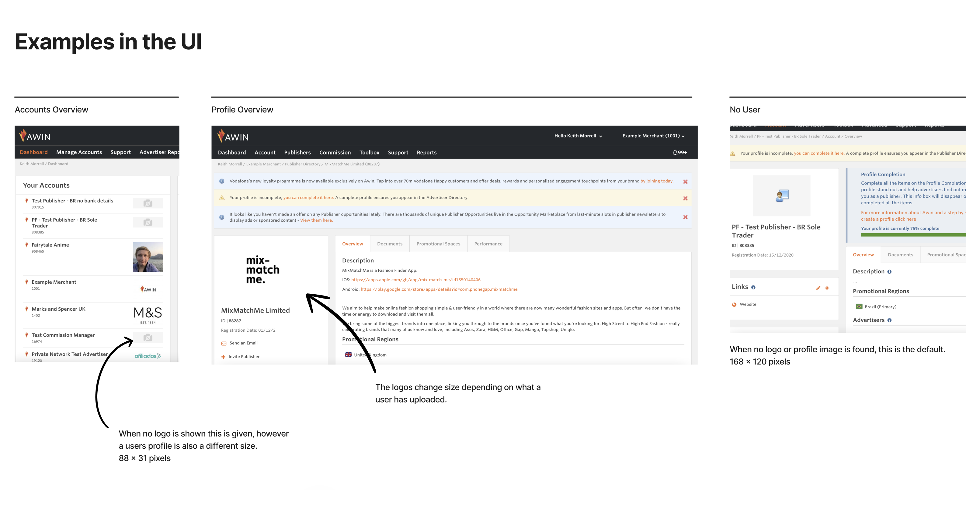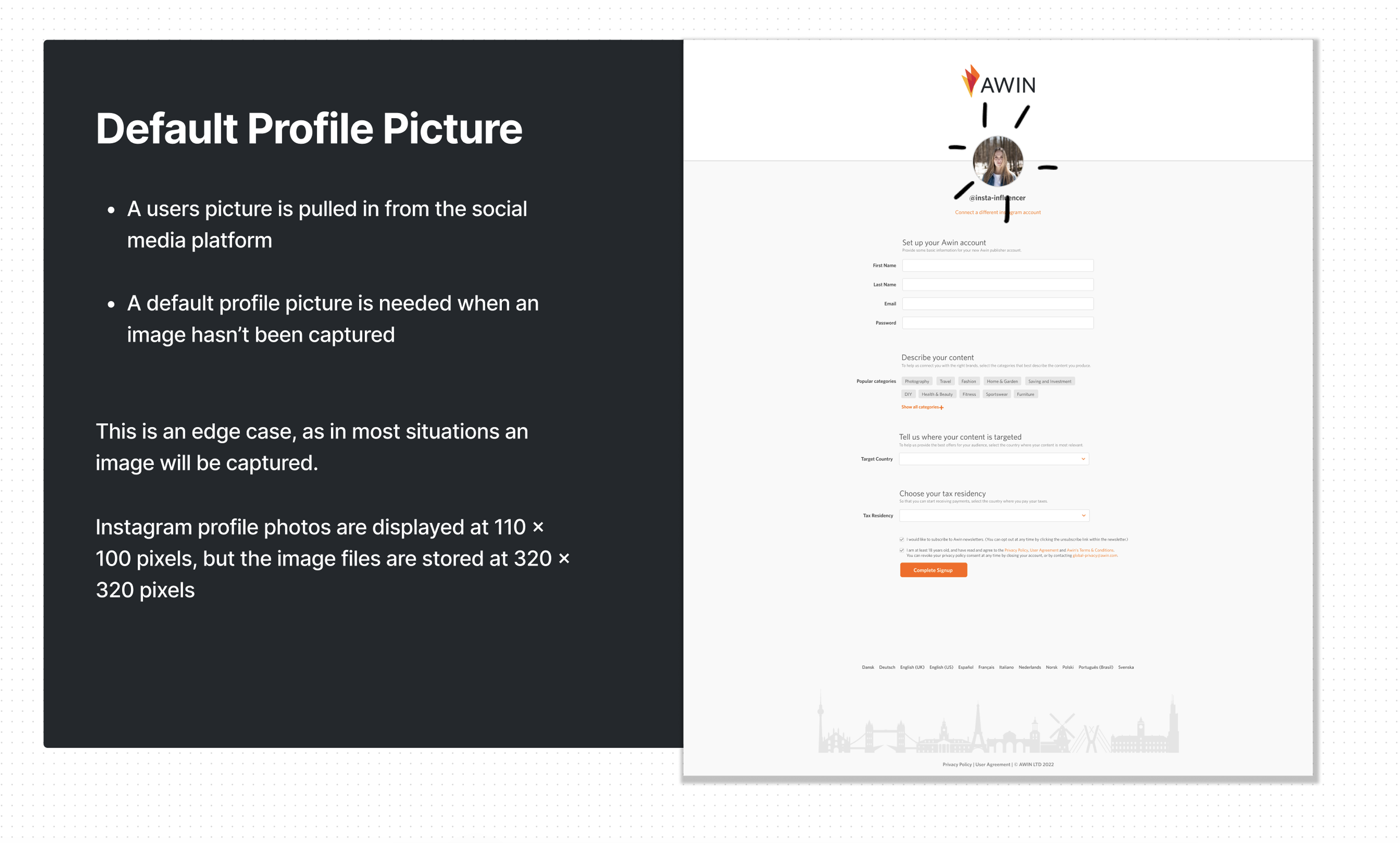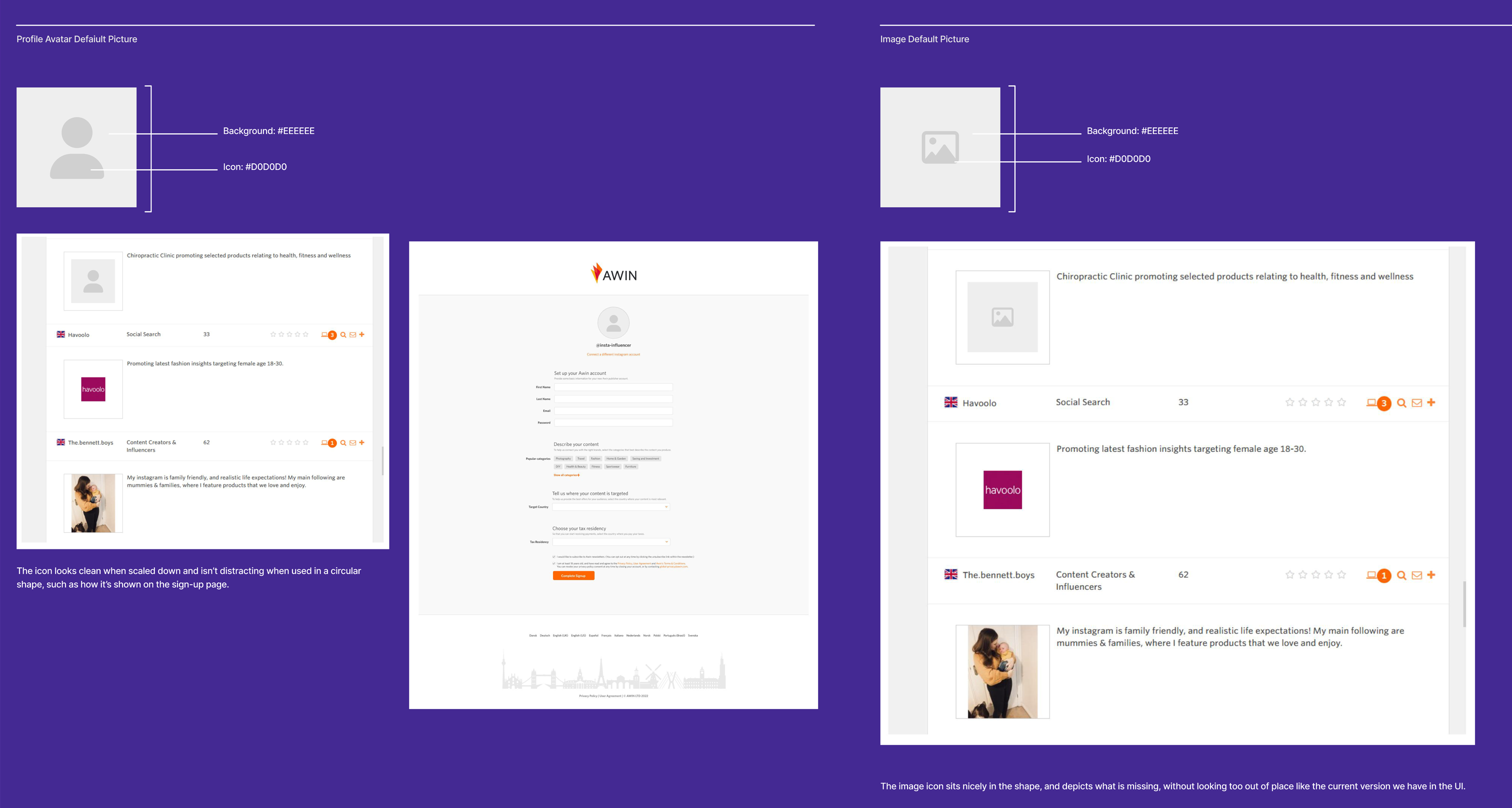 I audited the web app to identify where profile and company images are used, and when default images are required. This included investigating any edge cases and examining how influencer profile images are retrieved and stored.