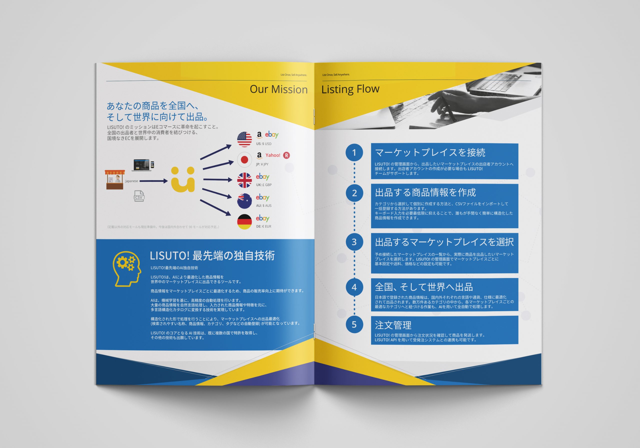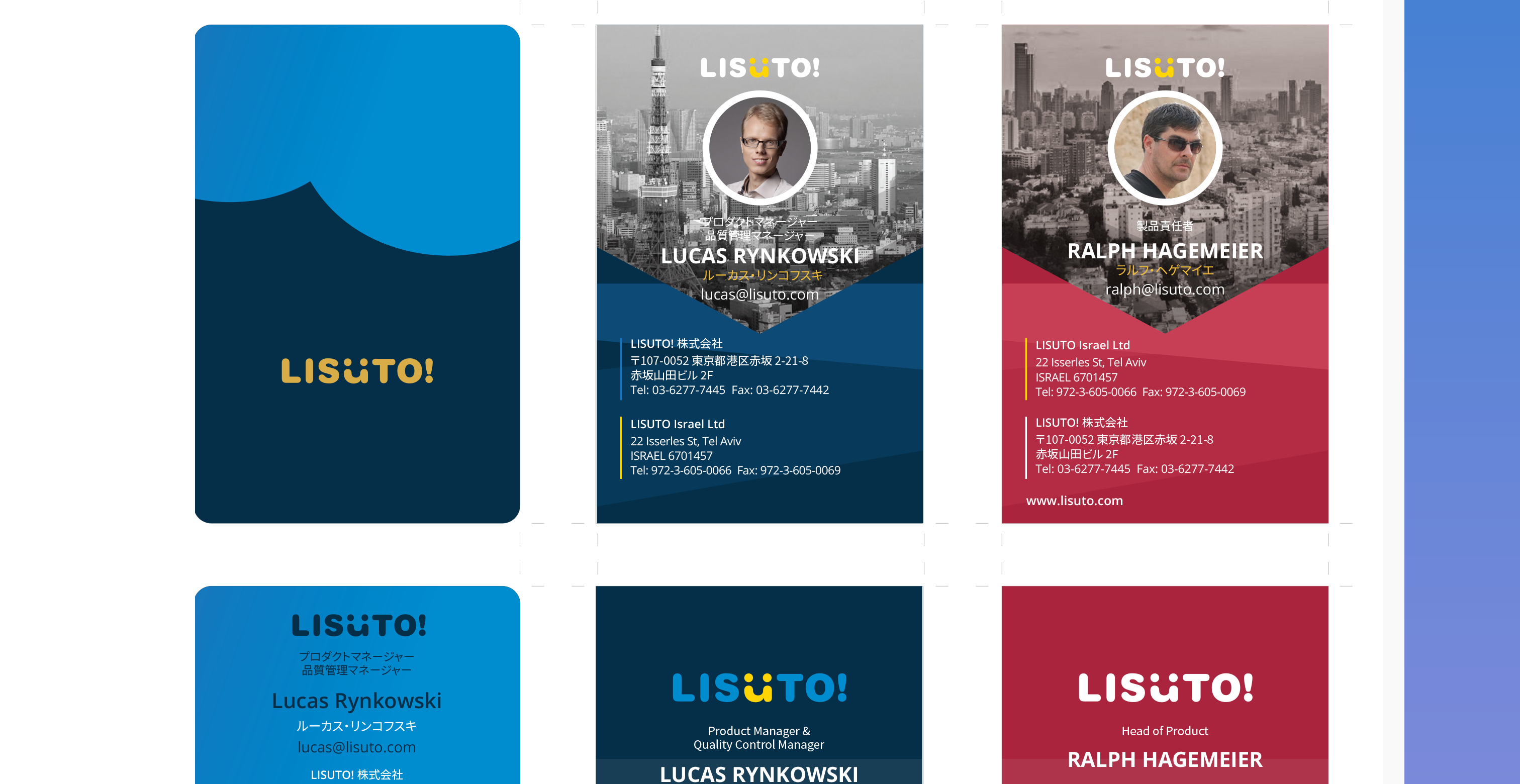 As Lisuto’s sole designer, I created promotional materials ranging from web content to traditional items like bilingual business cards and marketing leaflets in English and Japanese for our global teams.