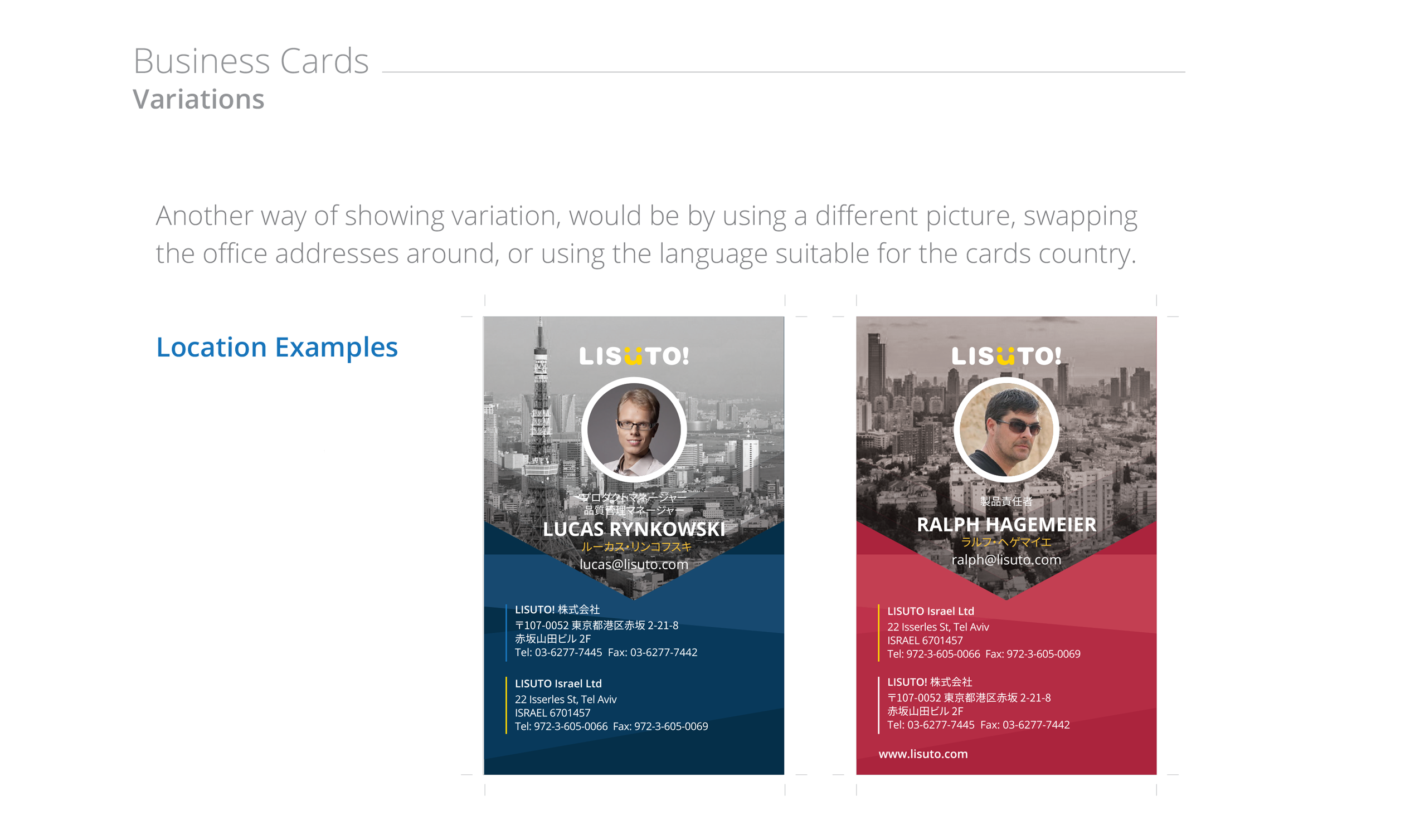 I narrowed down the concepts and presented them to stakeholders and the board, proposing the localisation of card content based on the employee’s office location. For senior positions and those who travel between offices, I suggested having cards in both languages.