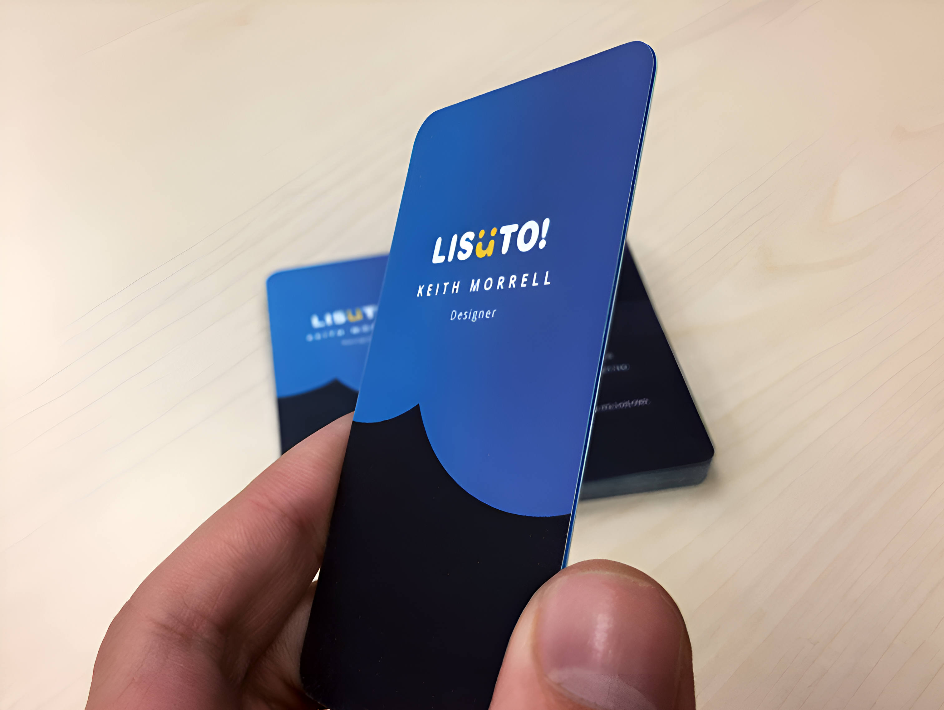 The final business card design prominently displayed the logo on one side, with the person’s name and title for easy readability. We chose duplex cards to give the cards a luxurious feel, using thicker card with a light blue or yellow middle layer. The reverse side included the person’s name, title, and contact details. To save costs, we opted for single-color printing.