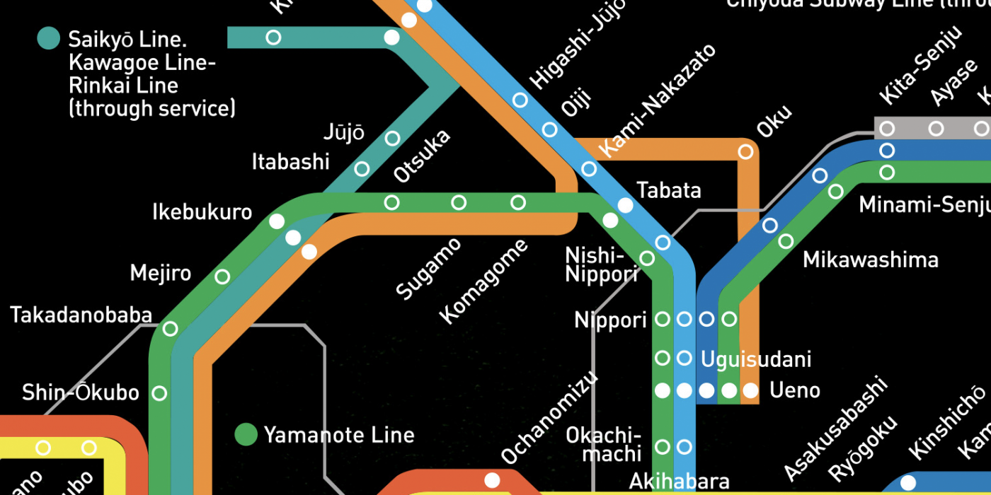 Tokyo is among the world’s busiest cities, with millions using its extensive network of overground and underground train lines daily. This inspired me to create an illustration showcasing a map of some of the train lines and stations.