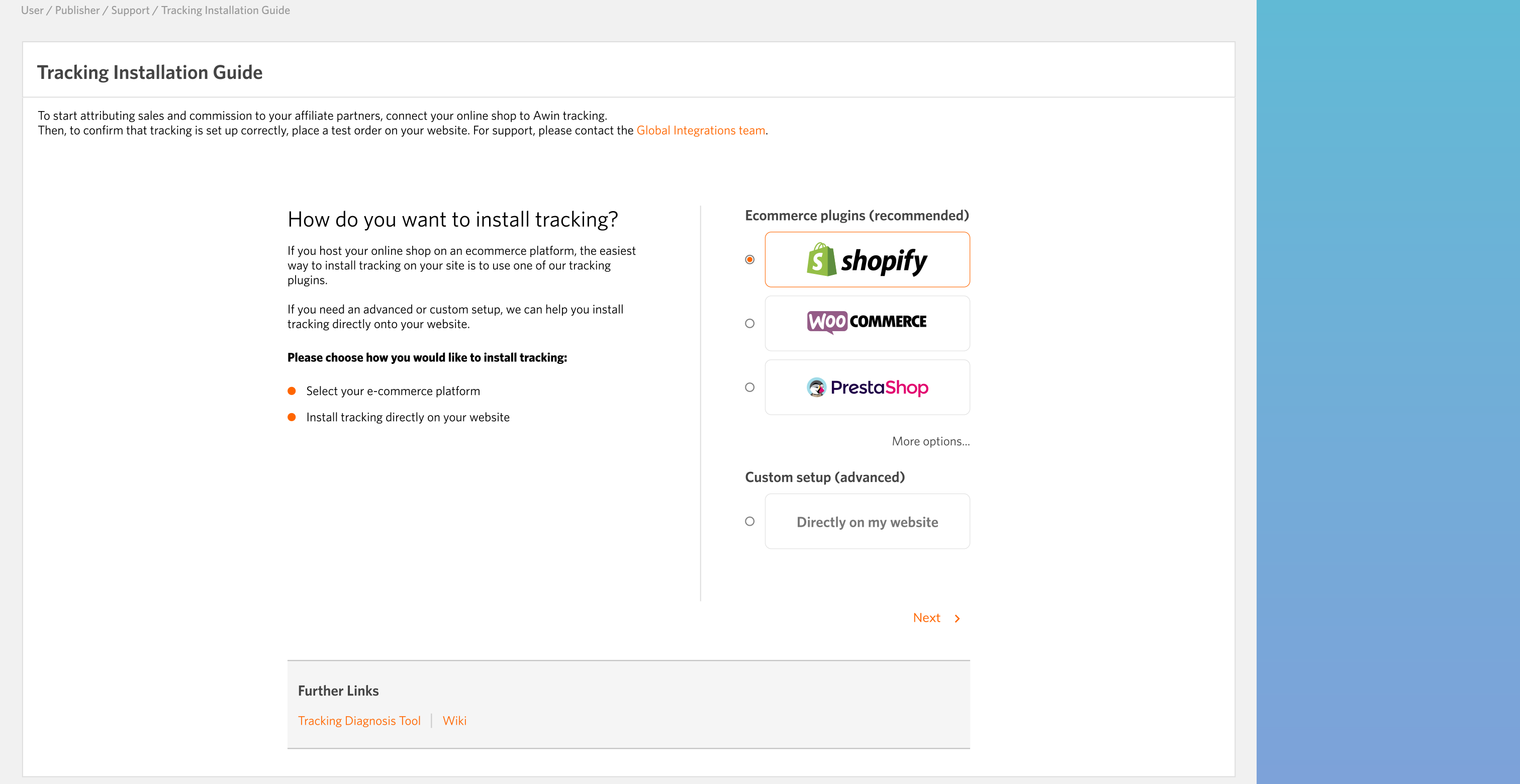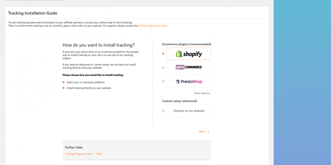 We aimed to simplify the tracking setup process for customers by introducing a setup wizard.